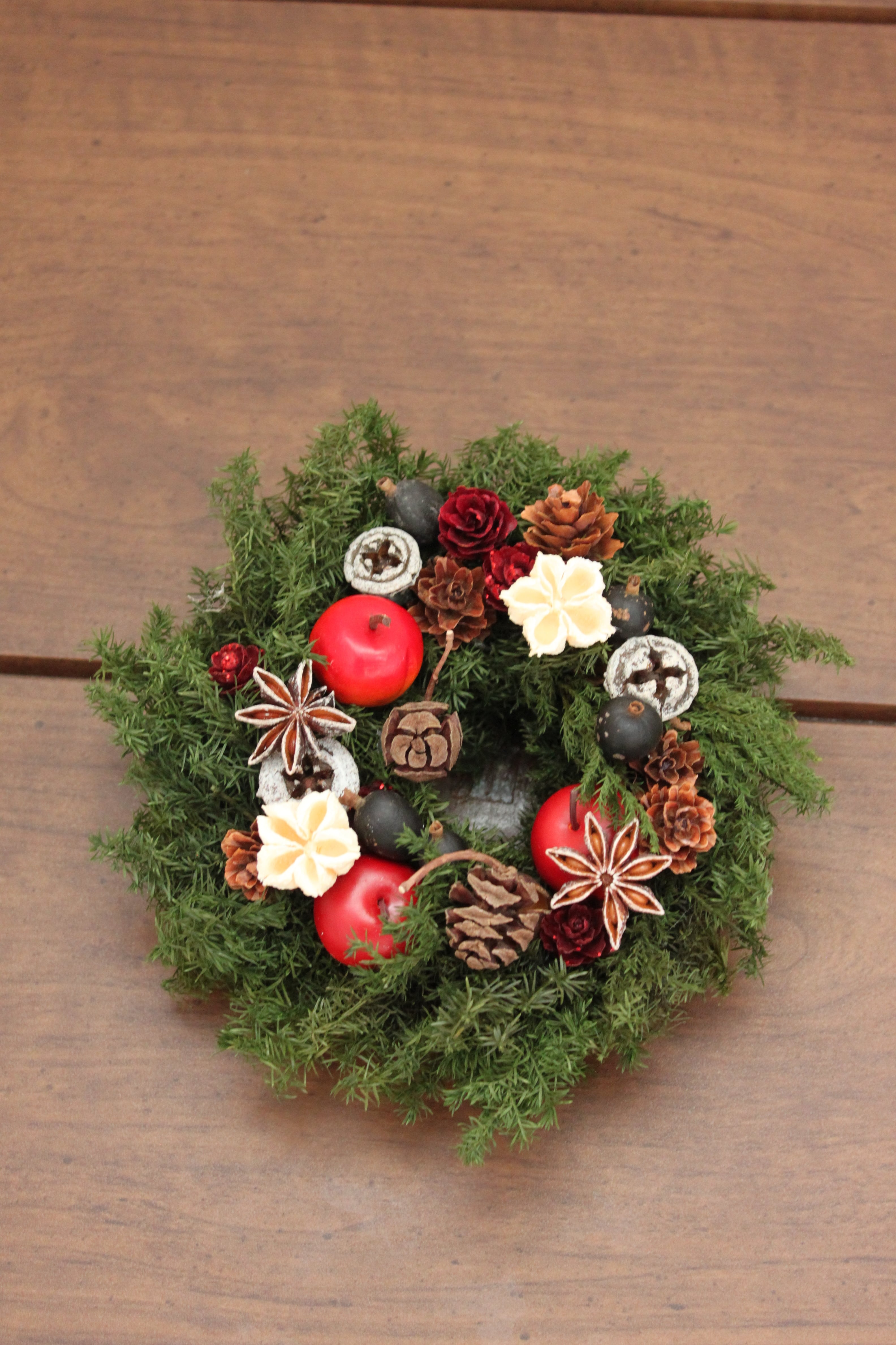 木の実などもワイヤリングしてお届けしますので、下準備なしですぐに飾り付けをお楽しみいただけます。